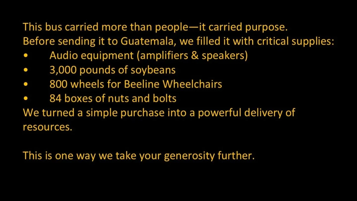 Thirdly, we support a variety of missions projects, including our three main areas: Church construction, drilling clean water wells, and delivering medical supplies and services. In addition to these types of projects, we also do special missions projects which have included just this year: delivering customized wheelchairs for children with disabilities, doing projects in our local communities, or even repurposing and delivering an ambulance.